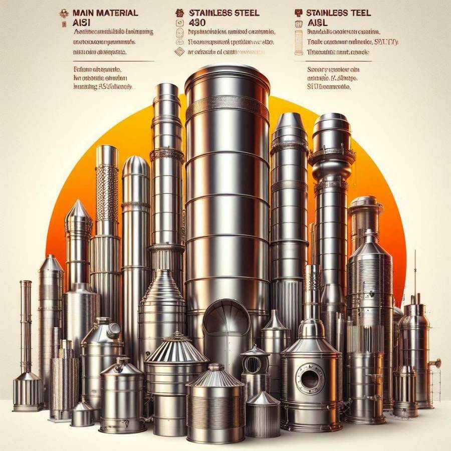 Основным материалом при изготовлении дымоходов является нержавеющая сталь марки AISI 430, AISI 304, AISI 316L. Также возможно использование и других марок стали, в соответствии с особыми требованиями заказчика.
